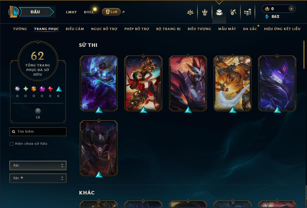 Tất cả tài khoản ĐTCL - LMHT trên web là tài khoản