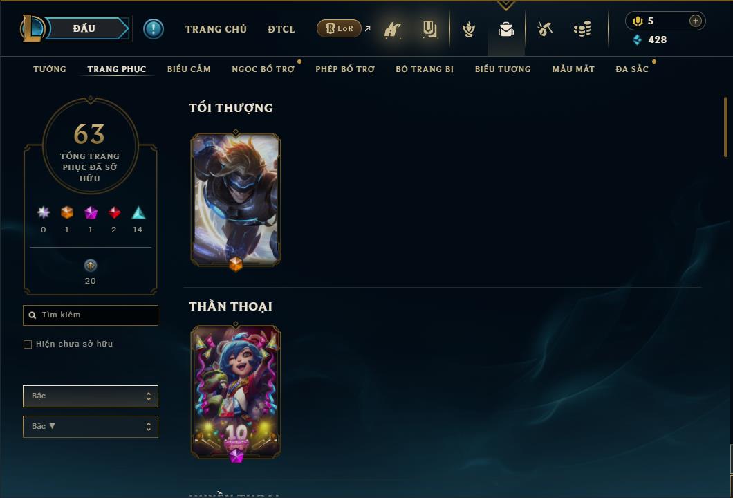 Tất cả tài khoản ĐTCL - LMHT trên web là tài khoản