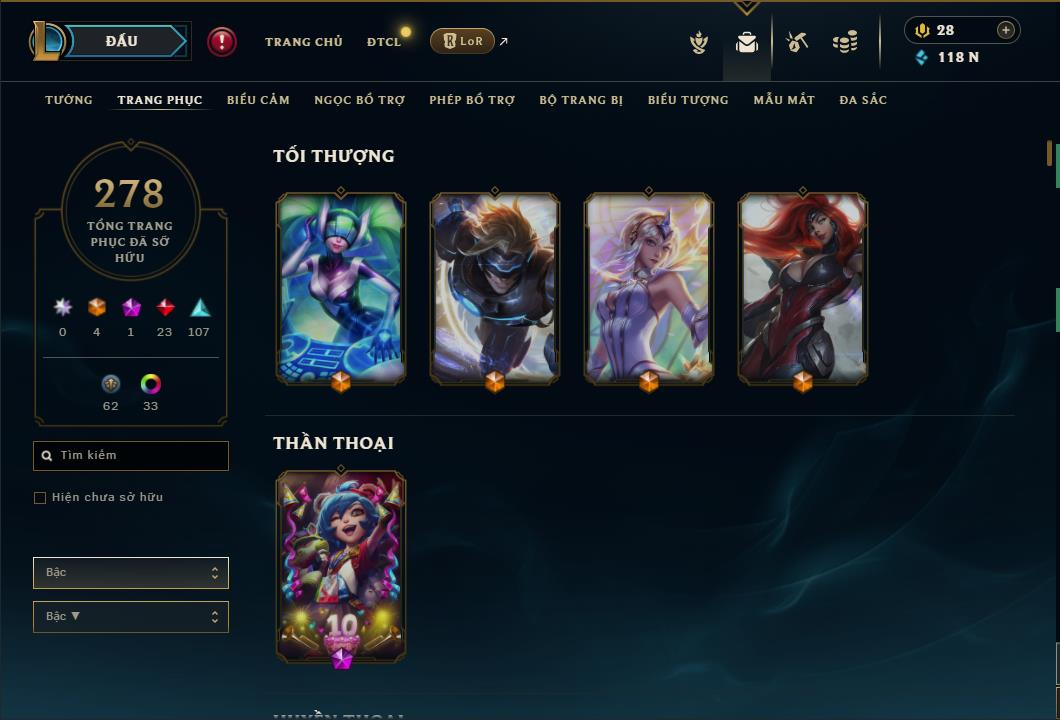 Tất cả tài khoản ĐTCL - LMHT trên web là tài khoản