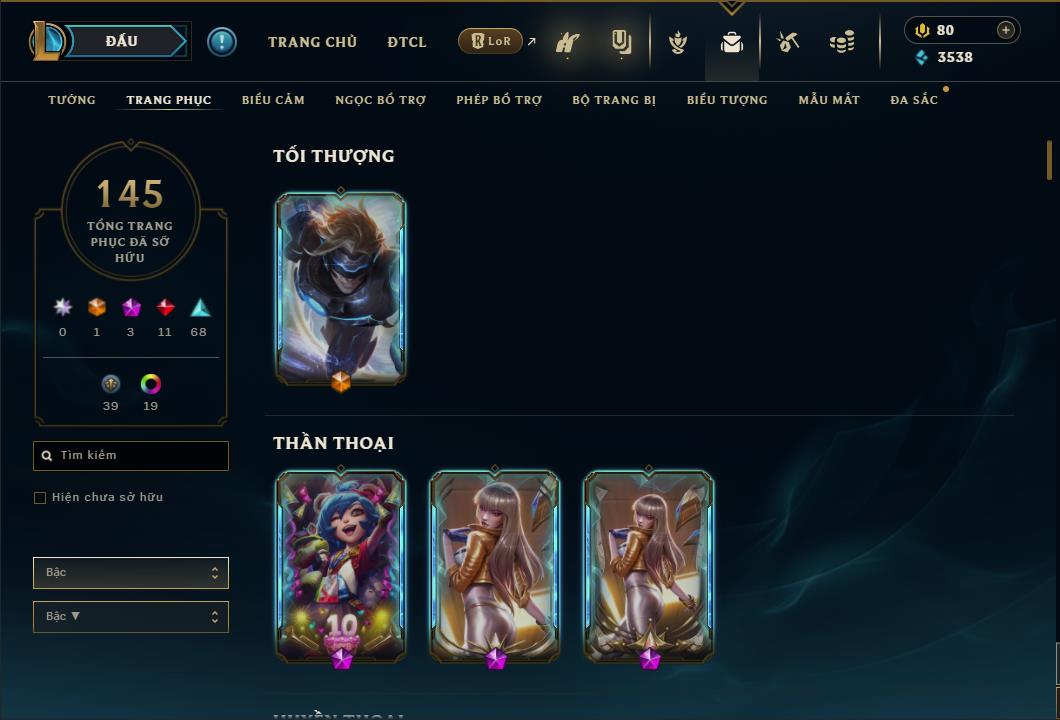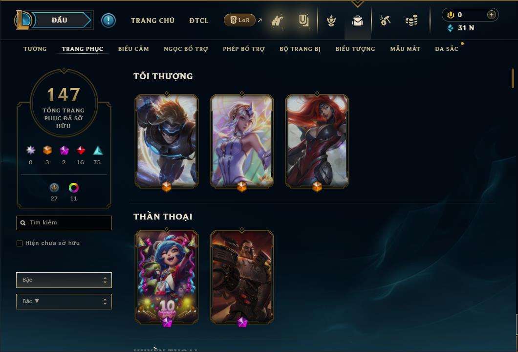 Tất cả tài khoản ĐTCL - LMHT trên web là tài khoản